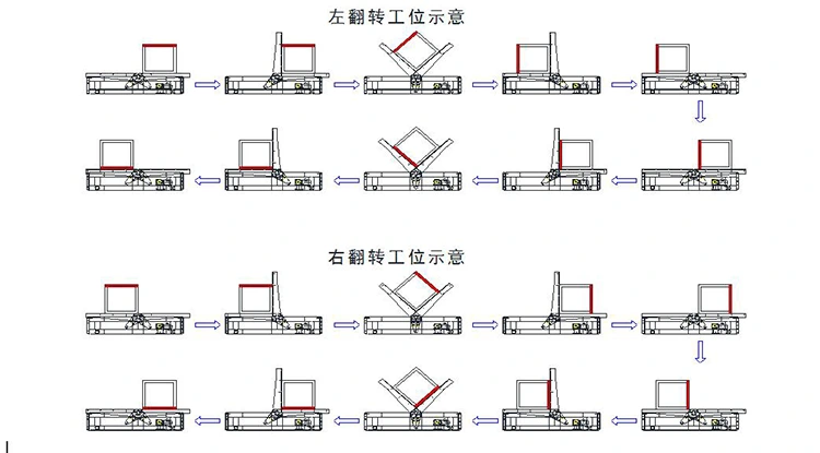 မိုဘိုင်း 180 ဒီဂရီဟိုက်ဒရောဟေးလ်ရောင်ခြည်ရောင်ခြည် flippers နှစ်ပိုင်းကိုတစ်ဖက်တွင်ရှိသောအလုပ်များအတွက်အလှည့်အပြောင်းအတွက်အသုံးပြုသည်။ အလုပ်လုပ်သောအခါအလုပ်အပိုင်းအစများကို roller table (သို့) အလုပ်အပိုင်းအစများမှအလုပ်မလုပ်ပါကအလုပ်ခွင်သို့လှည့်ပတ်ရန်လှည့်ပတ်သွားရန်နှင့်အလုပ်အပိုင်းအစများကိုလှည့်ပတ်ရန်တွန်းအားပေးရန်နှင့်အလုပ်အပိုင်းအစများကိုနောက်သို့ရွှေ့ပြောင်းရန်တွန်းအားပေးသည် လုပ်ငန်းစဉ်သို့မဟုတ်ဂဟေ။